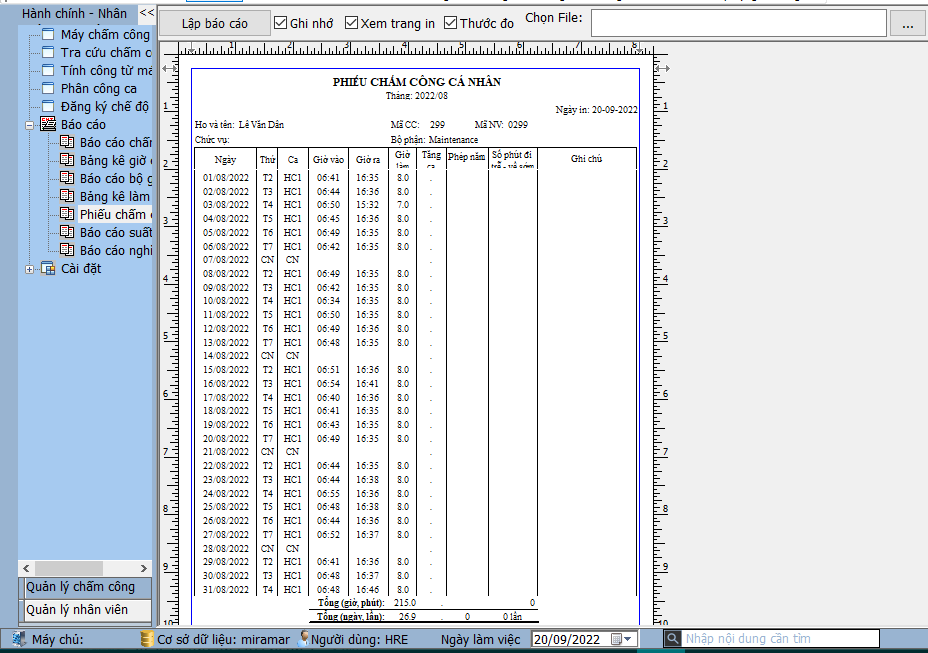 - CHỨC NĂNG VÀ BIỂU MẪU BÁO CÁO CHẤM CÔNG